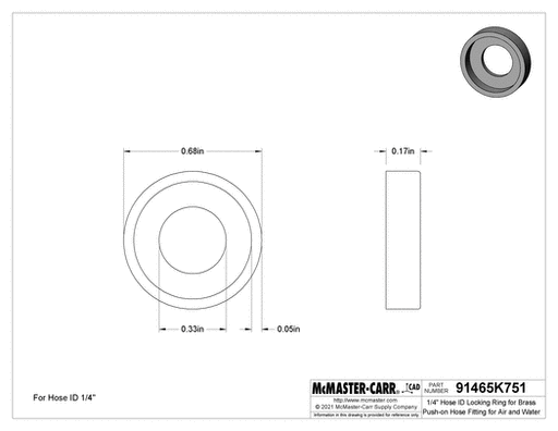 View full detailsMcMaster 91465K751 1/4" Hose ID Ring Stop for Brass Push-on Hose Fitting for Air and Water PK25